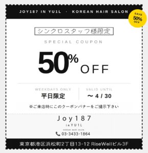 【~4/30】美容室限定!シンクロニシティースタッフ限定割引