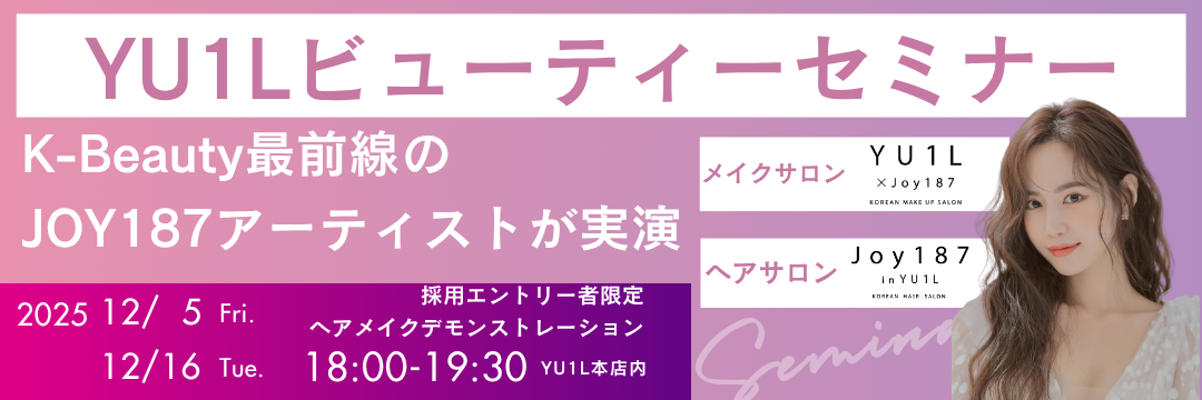「美しさを引き出す仕事に、誇りを持てる場所」 — ヘアメイクアップアーティストとしてYU1Lで働くということトレンドの最先端を行くK beautyをベースに、YU1Lでは一人ひとりのお客様に合わせたヘア&メイクの提案を大 […]